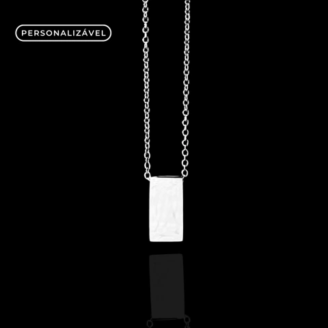 Colar com pingente retangular, ideal para montar composições e se manter numa linha entre o minimalista e o ousado.